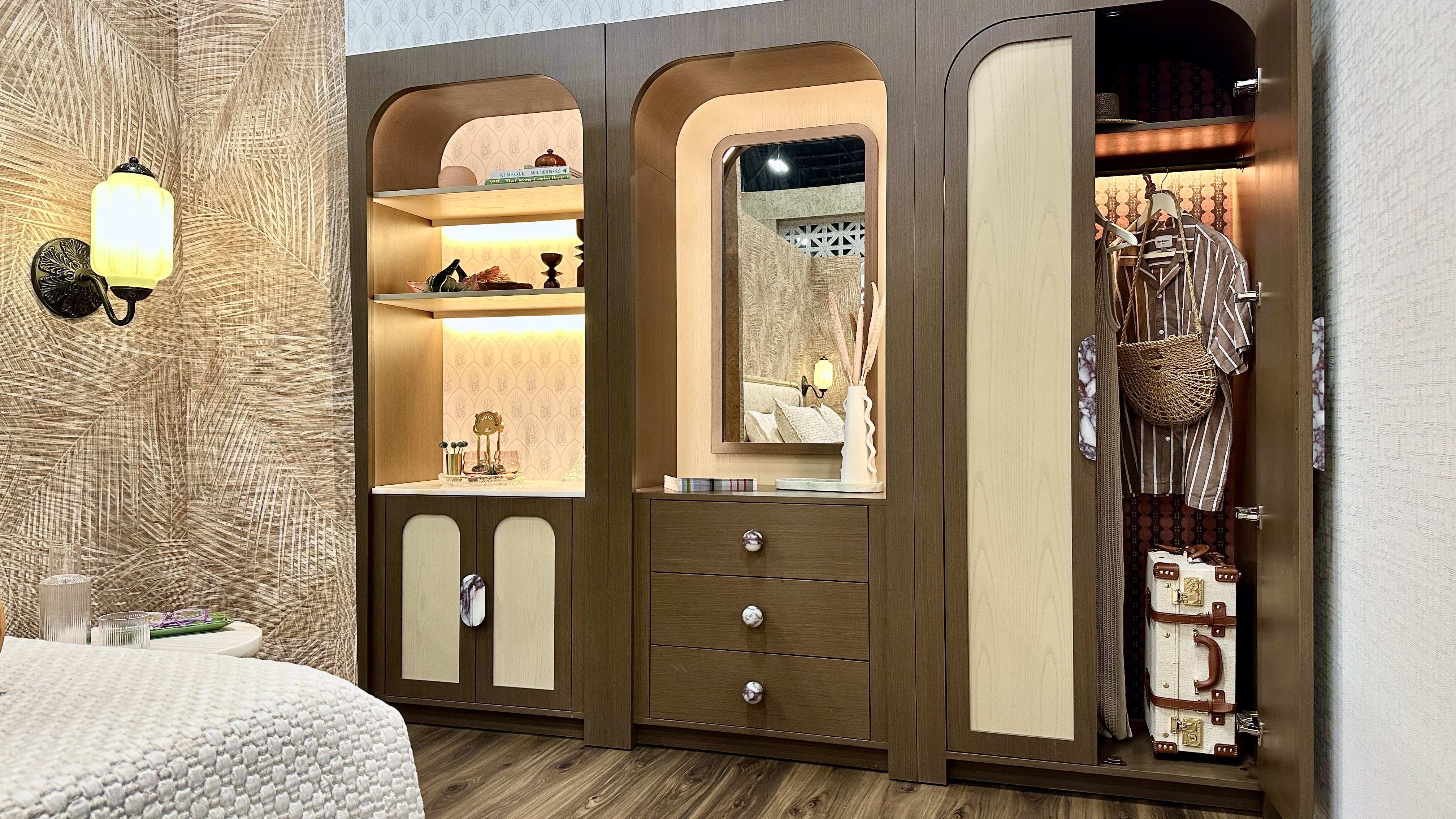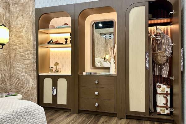The Bryan Ashley booth will highlight a curated collection of seating and casegoods designed to reflect both artistry and utility. A refined mix of light and dark wood finishes will be paired with natural rattan details to create cohesion throughout the space. Standout elements include a striking pleated sofa, a layered-material headboard, integrated closet units with LED lighting, and an array of seating and tables—all demonstrating the brand’s ability to translate bespoke design into functional, durable solutions for hospitality spaces.
